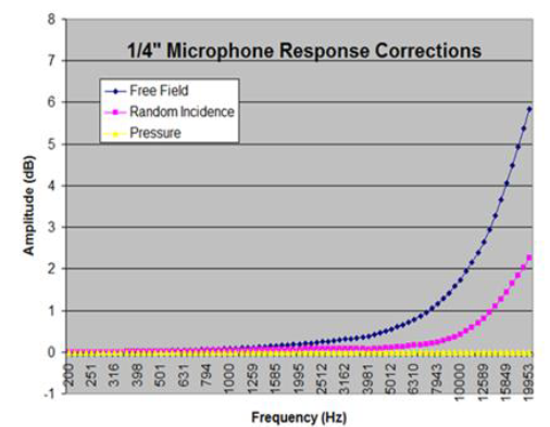 隨著測試頻率的增高,聲波波長變小。當聲波的波長和傳聲器本身的尺寸接近時,不同響應類型的傳聲器的輸出之間的差異開始變大。